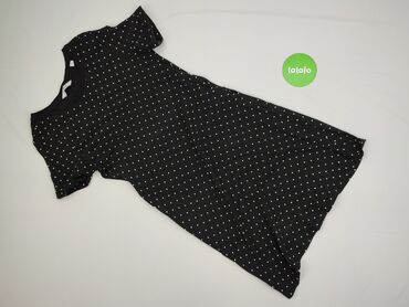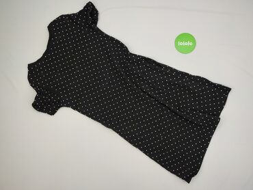 Sukienka damska w grochy - Kolor: czarny w białe kropki (polka dots) - Rozmiar: L (metka widoczna na zdjęciu) - Fason: dopasowany, długość za kolano/około midi, krótki rękaw, okrągły dekolt - Tkan...Stan: