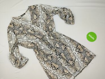 Sukienka MiLady – made in Italy - Fason: mini, kopertowy/przekładany, z marszczeniami w talii - Rękaw: długi, lekko rozszerzany przy mankiecie - Dekolt: w kształcie litery V - Wzór: połączenie mot...