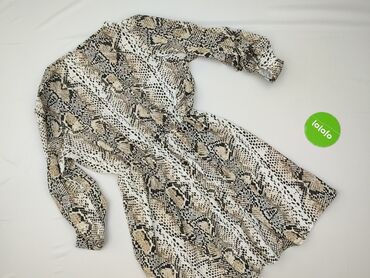 Sukienka damska MiLady – Made in Italy - Wzór: panterka w odcieniach beżu, czerni i karmelowego z akcentami koralowego - Krój: kopertowy dekolt V, podkreślona talia, rozkloszowany dół - Długość: m...Stan: