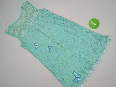 Sukienka damska bez rękawów, turkusowa - Krój: lekko rozkloszowany dół, talia z delikatną gumką podkreślającą sylwetkę - Góra: koronkowe wstawki z przodu i na plecach, półprzezroczysta koronka z m...