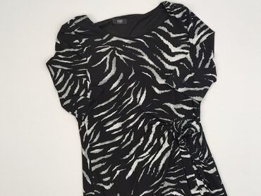 Sukienka damska w panterkę, rozm. M - Fason: dopasowany u góry, rozkloszowany dół z falbaną - Rękawki: krótkie, z efektowną falbanką - Dekolt: okrągły - Materiał: 100% poliester (metka na zdjęciu)...