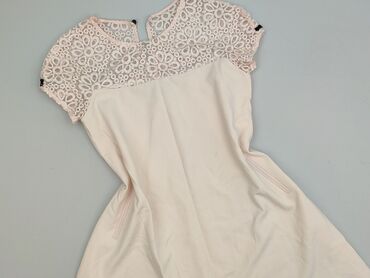 Sukienka damska, rozmiar M. Dwuczęściowy efekt: - góra: kremowa/śnieżnobiała koronka o kwiatowym wzorze, krótki rękaw, zaokrąglony dekolt, delikatne lamowanie przy krawędziach - dół: rozkloszowana ...