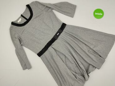 Sukienka damska RYBA, rozmiar 42 - Kolor: szary melanż - Fason: dopasowana w talii, z rozkloszowanym dołem; wiązanie/pasek w pasie podkreślający sylwetkę - Rękawy: długie - Dekolt: okrągły - Zapię...