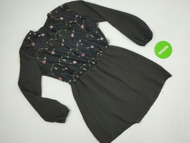 Sukienka damska z koronkową siatką i haftem roślinnym - Kolor: czarny z jasnym, dekoracyjnym haftem w motywy gałązek/kwiatów - Fason: dopasowany, długość do kolan lub lekko przed kolano - Rękawy: ...