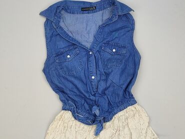 - Góra: koszulowa, bez rękawów, kołnierzyk, zapięcie na napy; dwie kieszenie na piersi; ściągacz w pasie i wiązanie z przodu