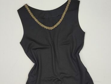 Sukienka damska na ramiączkach, midi, czarna z delikatnym połyskiem. - Fason: dopasowany tubowy, długość za kolano - Dekolt prosty z szeroką, ozdobną listwą u góry - Szerokie ramiączka - Materiał ...