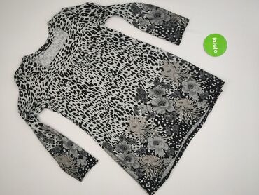 Sukienka damska, rozmiar M - Fason: prosta, mini, rękaw 3/4 - Wzór: abstrakcyjny/zwierzęcy, czarno‑szaro‑biały - Dekolt: łódka - Zapięcie: długi zamek z tyłu - Materiał: cienki, lekko lejący (miękk...