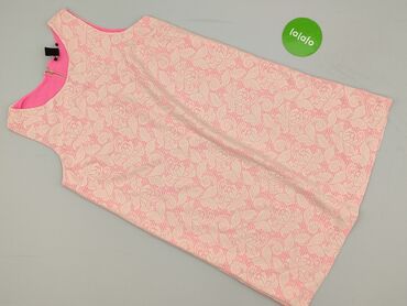 Sukienka damska, rozmiar M - Krój: prosty, długość za kolano, dekolt w serek - Rękawy: krótkie z falbanami; falbana również na dole sukienki - Wzór: złote, metaliczne kropki na pudrowo‑różowym tle...