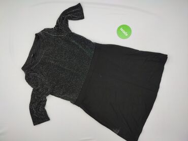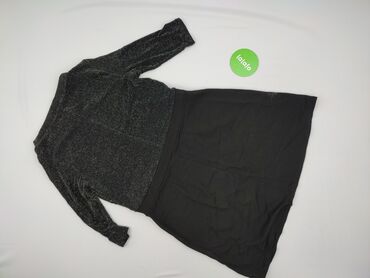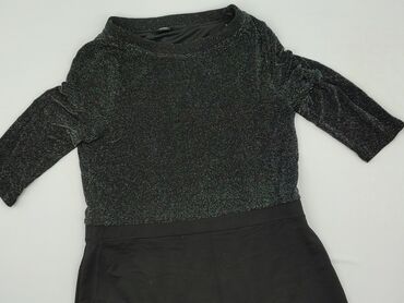 Sukienka damska, dopasowana, z długim rękawem - Kolor: czarny z drobnym, srebrzystym połyskiem (delikatny brokatowy efekt) - Krój: ołówkowy, przylegający do sylwetki, długość za kolano - Dekolt: ok...Stan: