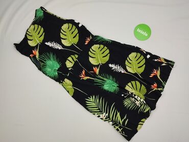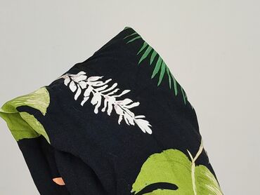 - Wzór: tropikalny print – liście monstera, palmy i kwiaty w odcieniach zieleni, bieli i pomarańczu na czarnym tle.