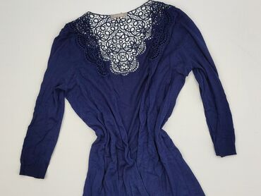 Dodatki i detale: wyraźne, dekoracyjne wstawki koronkowe podkreślające linię ramion i dekoltu; prążkowane mankiety. Granatowy kolor optycznie wysmukla sylwetkę. Idealna baza do eleganckich i casualowych stylizacji.