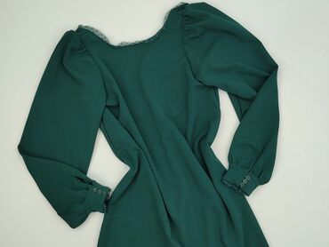 Sukienka LUC-CE, rozmiar S - Kolor: butelkowa zieleń - Krój: rozkloszowany dół, dopasowana góra z odcięciem w talii - Dekolt: okrągły - Rękawy: długie, z delikatnej koronki - Wstawki: koronkowe na...