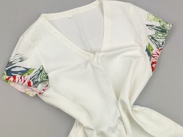 Sukienka damska, rozmiar M. Dwuczęściowy efekt: - góra: kremowa/śnieżnobiała koronka o kwiatowym wzorze, krótki rękaw, zaokrąglony dekolt, delikatne lamowanie przy krawędziach - dół: rozkloszowana ...