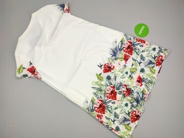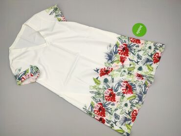 Sukienka damska, rozmiar 46 - Krój: prosta, lekko dopasowana, długość midi/przed kolano (w zależności od wzrostu) - Rękaw: krótki - Dekolt: okrągły z ciemną lamówką - Kolor: kremowy/beżowy - Wzór:...