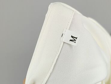 Sukienka damska z krótkim rękawem, rozmiar M. - Kolor dominujący: biały, z czarnymi wykończeniami przy dekolcie i mankietach. - Dekolt w kształcie litery V z kontrastową lamówką. - Fason: lekko ...