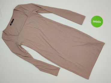Sukienka Sinsay, rozmiar XS - Kolor: beżowy/neutralny - Fason: midi, lekko dopasowana w talii - Dekolt: w kształcie litery V - Rękawy: długie, z delikatnymi marszczeniami i gumką przy mankiecie - ...