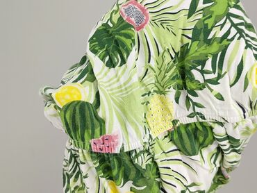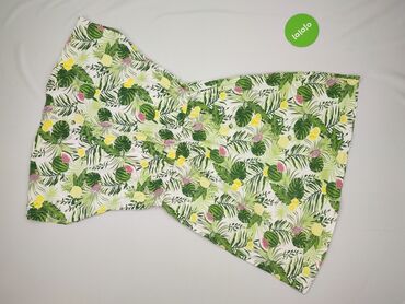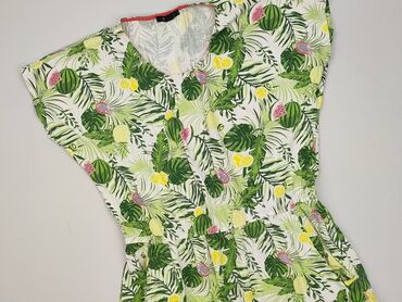 - Wzór: tropikalny print – liście i owoce (ananasy, arbuzy, cytryny, marakuje) na białym tle