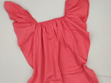 Sukienka/tunika damska w kolorze koralowym. - Fason: luźny, z gumką w pasie podkreślającą talię; krótkie, opadające rękawki. - Dekolt: okrągły. - Detal: górna wstawka z delikatnie prześwitującej d...