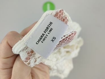 - Detale: cała z koronki o kwiatowym wzorze, okrągły dekolt, bez rękawów, ozdobna metalowa plakietka z logo w talii, falowany brzeg spódnicy