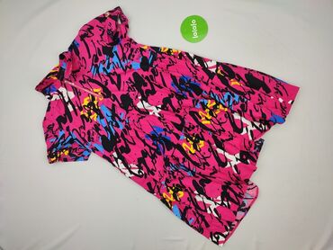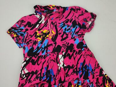 Sukienka damska MOKITO, rozmiar L - Fason: luźny T-shirt/dress z krótkim rękawem, wiązanie w talii - Wzór: szerokie, pionowe i ukośne pasy w kolorach: koralowy, różowy i granatowy - Dekolt: okrągł...