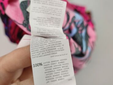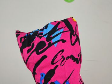 - Wzór: intensywny róż z graficznym, abstrakcyjnym nadrukiem w czerni, bieli, niebieskim i żółtym