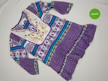 Bluzka damska w stylu boho/etno - Krój: luźny, z lekkim marszczeniem w pasie; dół nieco wydłużony z zaokrąglonym brzegiem - Rękawy: 3/4, swobodne - Dekolt: w serek z krótką listwą zapinaną na guzi...