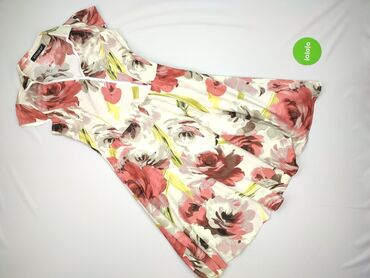 Sukienka damska w kwiaty - Fason: kopertowy dekolt V, odcięcie i szeroka gumka w pasie podkreślająca talię - Rękaw: krótki z delikatnym marszczeniem przy mankiecie - Długość: za kolano (midi) - Tk...