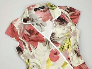 Sukienka w kwiaty „NEW COLLECTION” - Fason: rozkloszowana, z doszytymi falbanami na dole - Dekolt: kopertowy w kształcie litery V - Rękawy: krótkie, lekko bufiaste z delikatnym marszczeniem przy r...