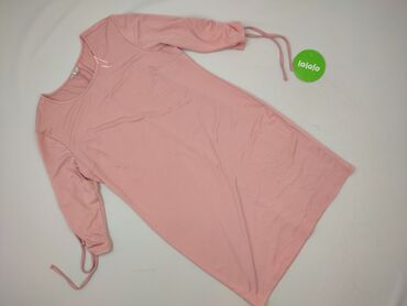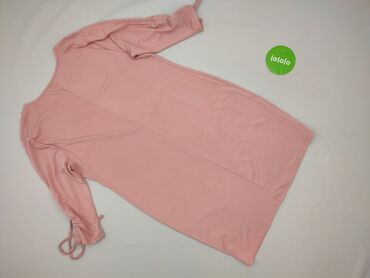 Sukienka damska w kolorze pudrowego różu - Rozmiar: 38 (z metki) - Krój: prosta, luźniejsza góra z delikatnym zwężeniem w talii; dół z zaokrąglonym, lekko wydłużonym tyłem - Dekolt: w kształcie li...