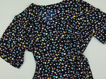 Sukienka damska w grochy - Kolor: czarny w białe kropki (polka dots) - Rozmiar: L (metka widoczna na zdjęciu) - Fason: dopasowany, długość za kolano/około midi, krótki rękaw, okrągły dekolt - Tkan...