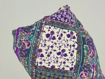 - Wzór: patchwork/boho – mieszanka motywów kwiatowych i geometrycznych; dominują odcienie fioletu, zieleni, turkusu, bieli i różu