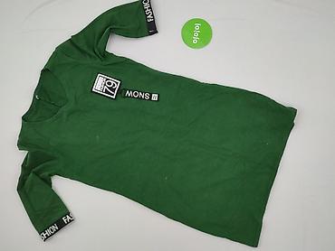 Sukienka damska, zielona, z nadrukiem/łapką „SNOW FASHION 79” z przodu oraz dekoracyjną taśmą „SNOW”. Rękawy 3/4 wykończone czarnymi mankietami z napisem „FASHION”. Prosty, dopasowany krój, dekolt półokrągły, długość za kolano (na zdjęciu miarka pokazuje ok. 95–100 cm całkowitej długości). Materiał elastyczny, miękki w dotyku (dzianina bawełniana z domieszką elastanu – metka składu niewidoczna). Rozmiar z metki: 40. Kolor jednolity, intensywna zieleń. Idealna na co dzień, do legginsów lub solo.