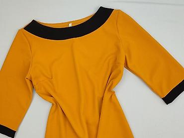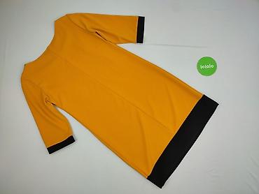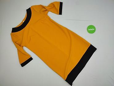 Sukienka dzianinowa w kolorze musztardowym - Krój prosty, długość za kolano - Rękawy 3/4 - Okrągły dekolt - Dwie boczne kieszenie wsuwane - Materiał miękki, elastyczny, melanżowy (musztardowo‑miod...