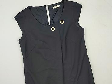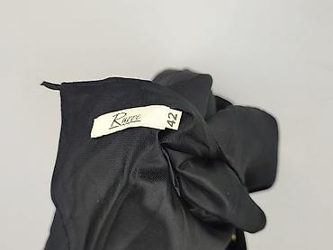 Czarna sukienka Top Trendy, rozmiar 42 - Krój: prosta, lekko dopasowana, długość przed kolano - Rękaw: 3/4 - Dekolt: okrągły - Detale: lamówki z połyskiem przy dekolcie i rękawach, cienki pasek do...