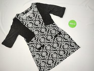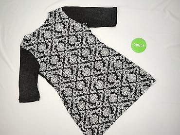 Sukienka damska New Collection Italy - Fason: prosta, lekko dopasowana, długość do kolan - Rękaw: 3/4 - Dekolt: okrągły - Wzór: gęsty, geometryczno‑kwiatowy print w odcieniach szarości i czerni na...