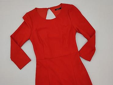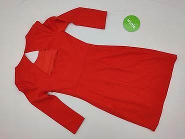 Sukienka damska XS/165, czerwona z czarnymi rękawami - Krój: trapezowy/lekko rozkloszowany, długość do kolan lub za kolano (zależnie od wzrostu) - Rękawy: długie, czarne, z półprzezroczystej siate...