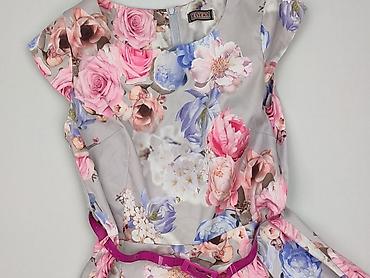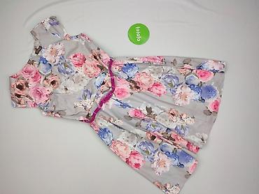 Sukienka damska w kwiaty, rozmiar EUR 36 - Krój: dopasowana góra, rozkloszowany dół, długość do kolan - Rękaw: krótki - Dekolt: okrągły - Zapięcie: z tyłu (widoczne rozcięcie z guzikiem) - Wzór: g...
