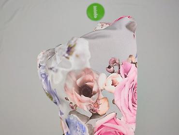 - Wzór: duży, efektowny nadruk kwiatowy (róże, piwonie, hortensje) w odcieniach różu, fioletu, niebieskiego i bieli na jasnoszarym tle
