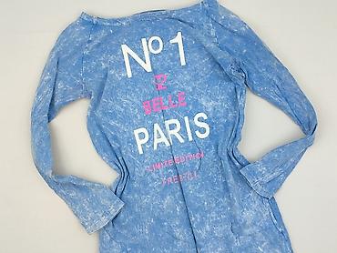 Sukienka damska z długim rękawem, niebieska, z efektem sprania (acid wash). Na przodzie nadruk: “No 1 Belle Paris – Limited Edition – Freestill” w bieli i różu. Prosty, dopasowany krój, okrągły dekolt, miękki elastyczny dzianinowy materiał. Długość mini/za kolano w zależności od wzrostu. Na jednym ze zdjęć widoczna drobna niedoskonałość przy szwie rękawa. Idealna na co dzień do sneakersów lub botków.