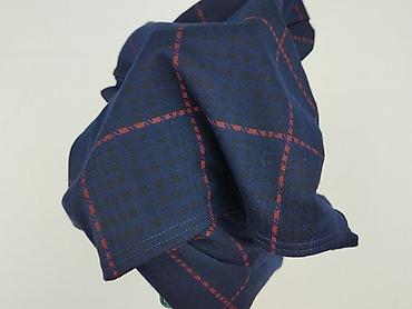 - Kolor: granatowy z bordową kratą (drobny, teksturowany deseń)