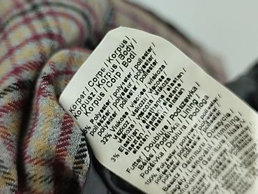 - Skład materiału (korpus – część w kratę): 65% poliester, 32% wiskoza, 3% elastan – przyjemna w dotyku tkanina z lekką elastycznością.