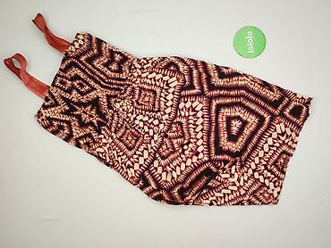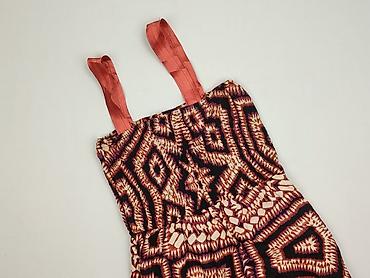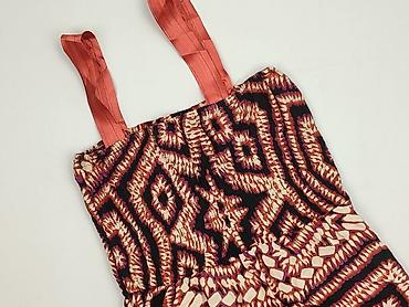 - Wzór/kolory: wyrazisty, geometryczno‑etniczny print w odcieniach czerni, rdzawej czerwieni, ecru i fioletu; gładkie ramiączka w kolorze koralowym.