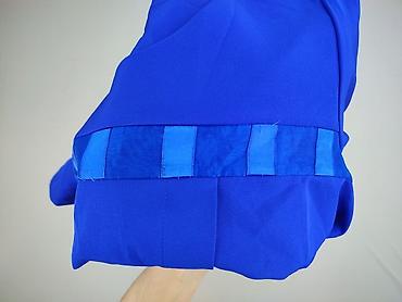 - Detale: ozdobna, satynowa wstawka w pasie z pionowymi segmentami w odcieniach niebieskiego; delikatne przeszycia modelujące z przodu i z tyłu; niewielkie rozcięcia po bokach u dołu