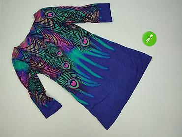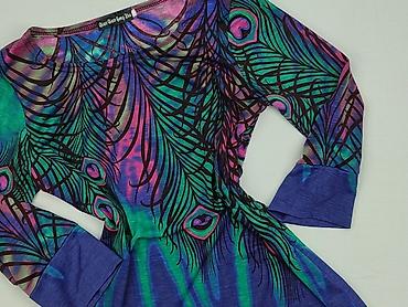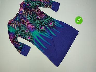 Sukienka damska z długim rękawem, elastyczna - Krój: dopasowana góra, lekko rozszerzany dół (tunika/sukienka mini) - Dekolt: okrągły - Wzór: wielobarwny, artystyczny print w odcieniach fioletu, śli...