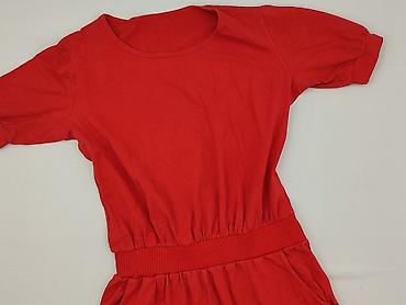 Czerwona sukienka damska Home, rozmiar S. - Fason: ołówkowy, przylegający, długość midi/przed kolano - Dekolt okrągły - Koronkowe wstawki na ramionach i górnej części pleców w kwiatowy wzór - Krót...