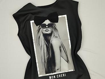 - Przód: duży czarno‑biały nadruk z napisem „MON CHERI”, obramowany metaliczną lamówką; dekoracyjna, przestrzenna kokarda przy dekolcie