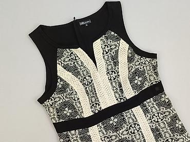 Sukienka damska, rozmiar 36 - Krój: na ramiączkach, góra dopasowana, dół lekko rozkloszowany - Długość: za kolano (midi) - Kolorystyka: kontrast czerni z jasnym, perłowym beżem - Detale: ozdobny pa...