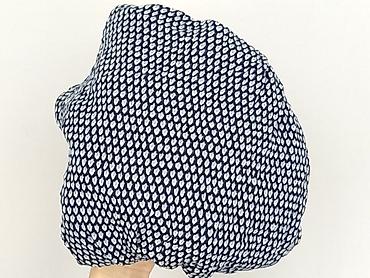 - Wzór: drobny, nieregularny print w odcieniach granatu i bieli