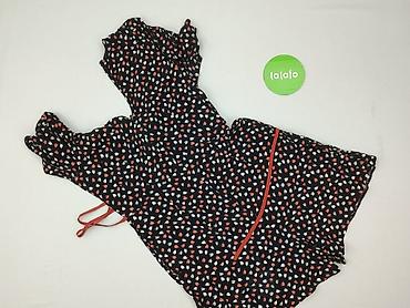 Sukienka damska w drobny wzór liści na czarnym tle, z czerwono-białymi akcentami.