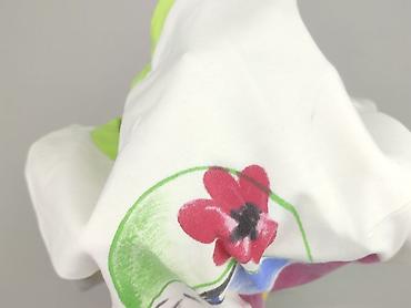 - Detale: limonkowe wykończenia przy dekolcie i u dołu, na przodzie duży barwny nadruk/print z grafiką twarzy i pociągnięciami pędzla (fuksja, żółty, zielony, niebieski)